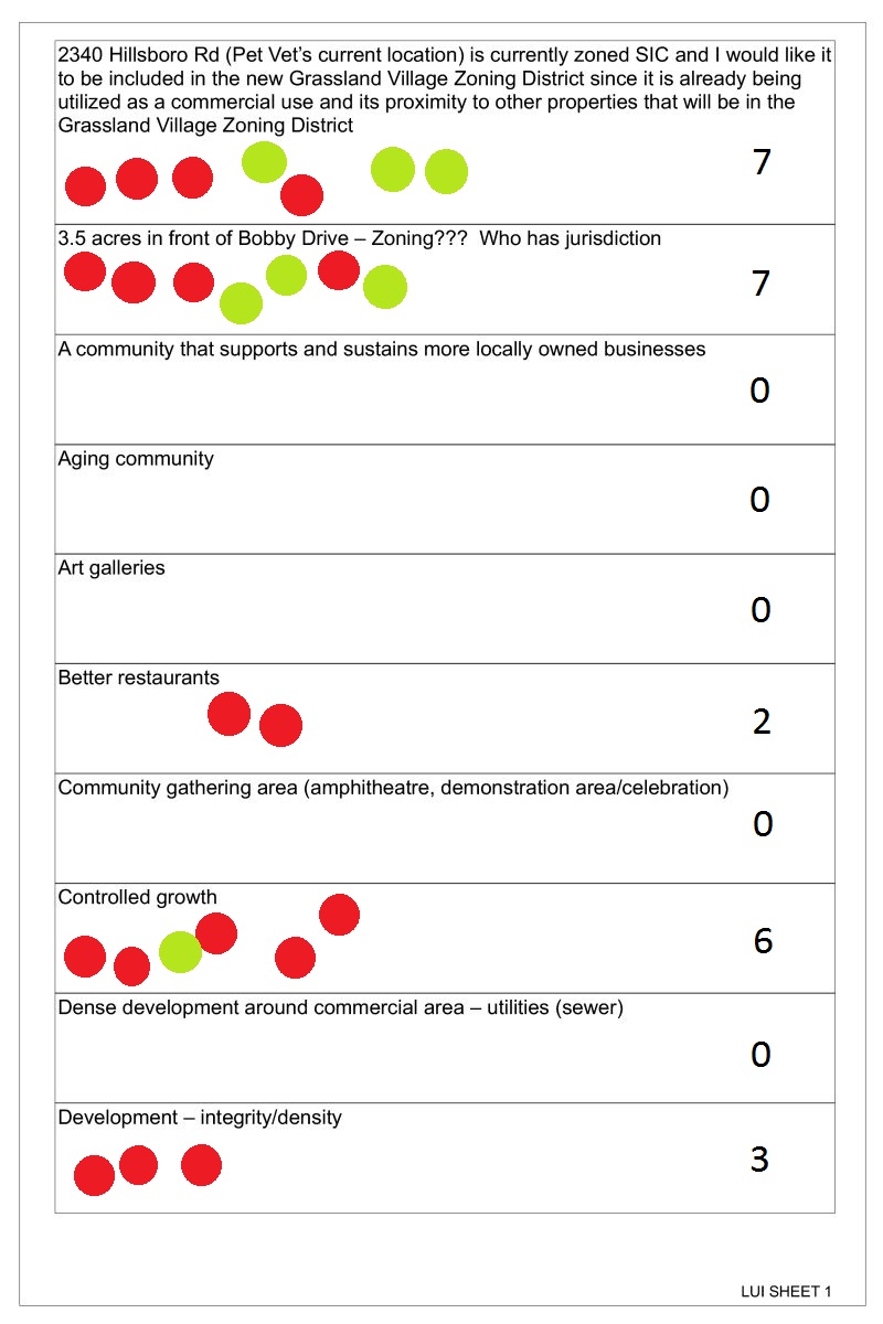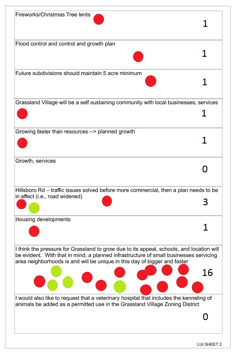 Williamson County Planning Staff and the Grassland Citizen's Advisory Committee were on site to gain community insight on which issues were most important in the Grassland Village and to draft a preliminary vision for the next twenty years. The Public Involvement Meeting ran from 6:30 - 8:30 PM in the Grassland Middle School Cafeteria